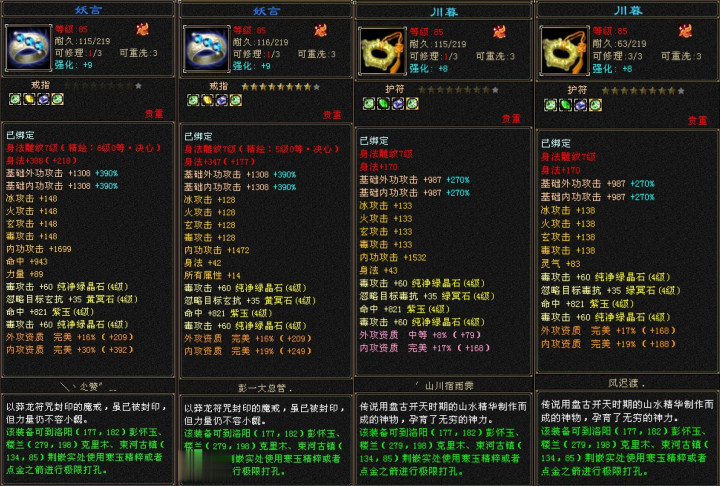 但是全套戒指护符都是冰火玄毒小极品八星!