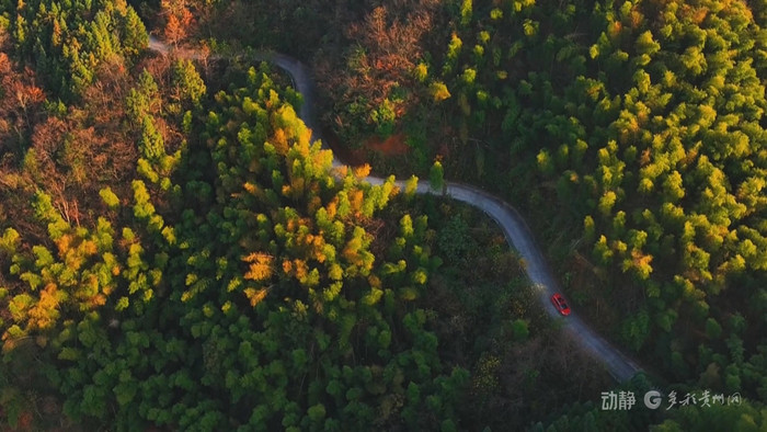 当暮色为层林镀上金边,夕阳的流苏掠过林梢,万千叶影在风中交织成光的涟漪。蜿蜒山径如丝绸飘落林间,引领着踏歌的游人,步入这被时光遗忘的童话之境。