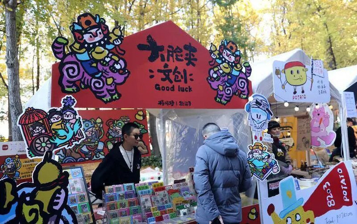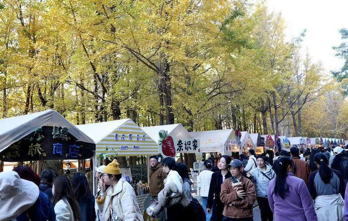 汇聚手工艺品、非遗展示、特色美食等多元业态的“银杏文创集市”人气爆棚。