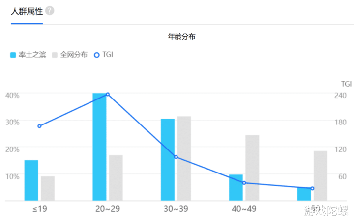 因此别看SLG这个品类总被调侃是做给中年人、有钱老板玩的,但从百度指数等数据能清晰看到,《率土之滨》的用户画像中20多岁的年轻人占比非常高。