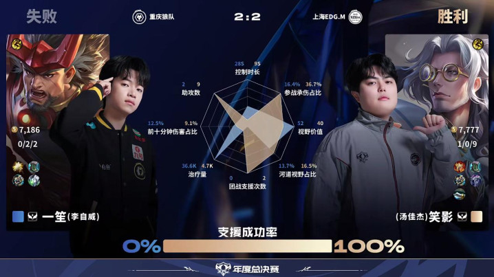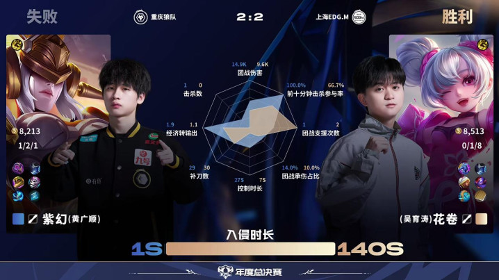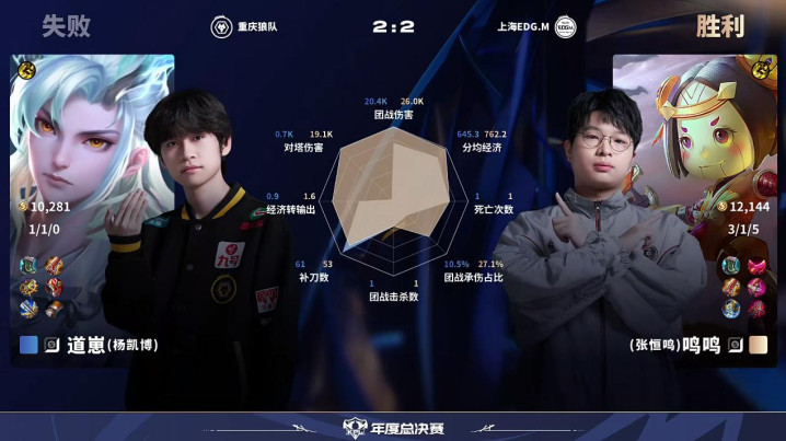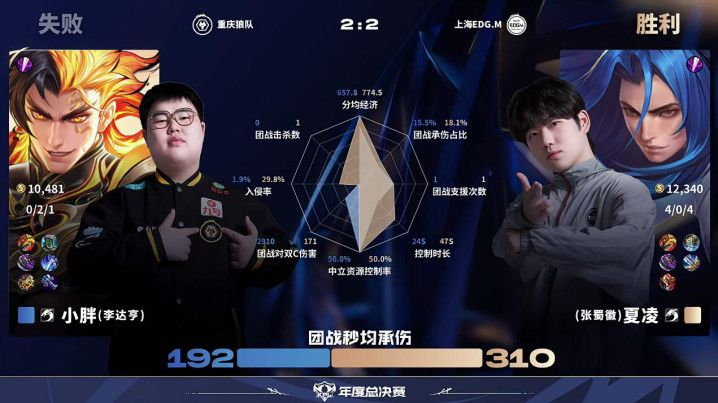 虎扑10月02日讯EDG/狼队第4局数据对比:归期夏洛特全包围小泽蒙恬。